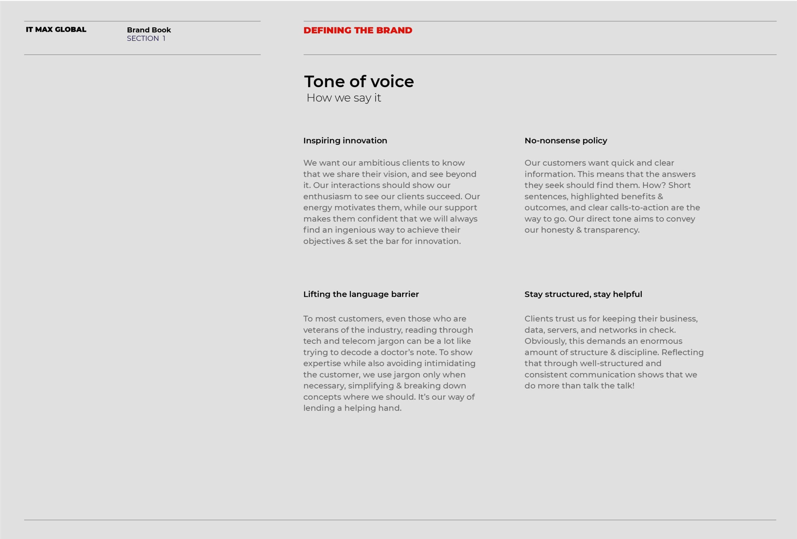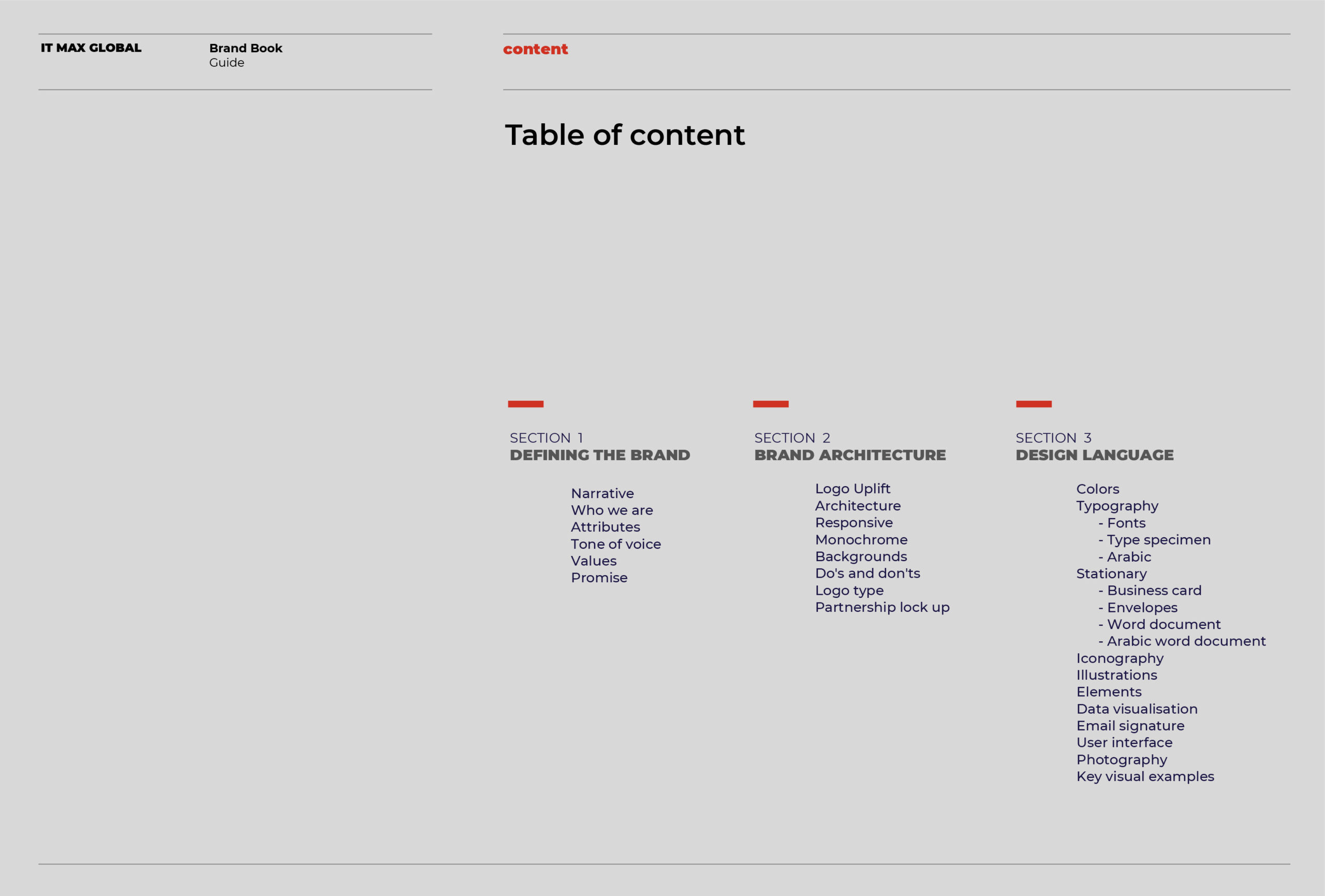 IT MAX GLOBAL provides IT & Telecom solutions that empower private and public organizations to modernize their operations & stay ahead of tomorrow’s challenges. As part of their ongoing efforts to enhance the brand, they have reached out to uplift and develop a comprehensive brand guideline that will equip the marketing team to effectively communicate the brands values and vision to the world.